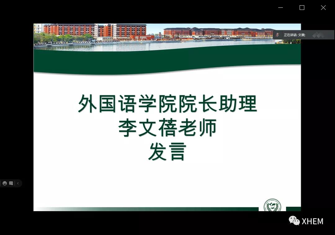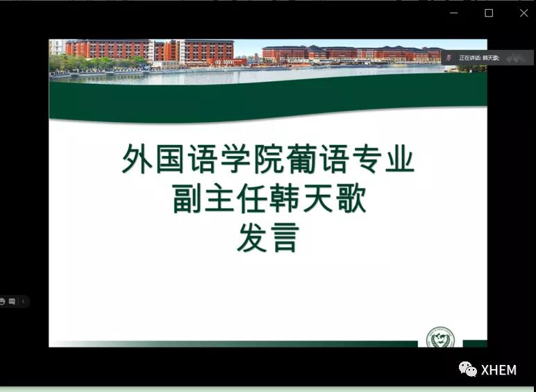 接着,葡萄牙语专业副主任韩天歌表示,在各方努力之下,学校能够解封,大家都感到激动。同学们在抗疫之后又要面临另外的挑战-实习。韩天歌副主任认为实习是整个本科学习阶段中重要的组成部分,同学们需要重视。她对于即将要参加实习的同学们提出了五点的要求:第一,要树立信心。她鼓励同学们,所有人到社会工作都是从零开始,而太阳成集团为同学们配备了良好的团队,所以同学们要对自己的能力有信心。第二, 实习过程中要树立正确的三观,不盲目跟风。第三,同学们以学业为主,在实习过程中不要偏离主要的实习目的,必须按时保质完成毕业论文。第四,不要局限于自己的专业,要学会把专业作为一个工具,放大自己的格局。尝试各种工作。第五,实习中把高姿态和低姿态相结合。高姿态就是眼界要高,低姿态就是放平心态,放下身段,任劳任怨。最后,韩天歌副主任祝愿同学们实习顺利,收获满满!