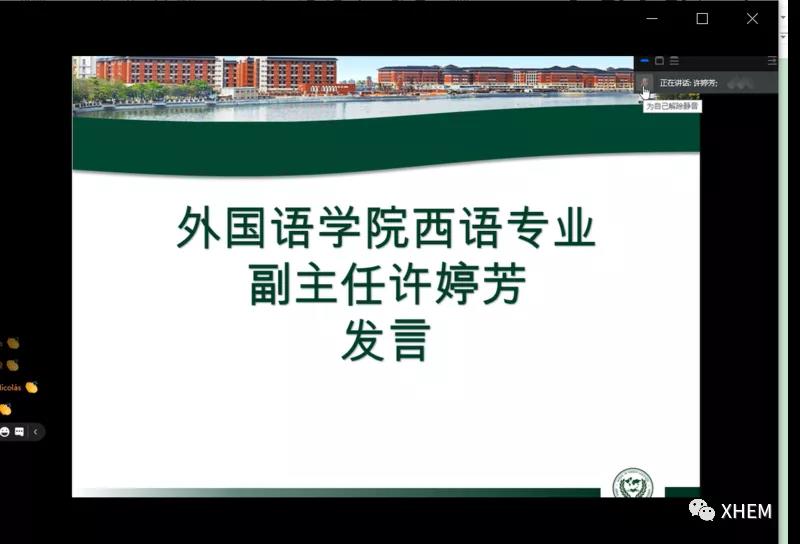 随后,西班牙语专业副主任许婷芳指出,各项措施的保障下,学校成功顺利解封。因为实习涉及到了学分,所以她敦促同学们抓紧时间寻找实习工作,尽量找与专业相契合的实习岗位。她表示学院考虑到实习的实际情况,在下学期会尽量集中排课,所以还是留给同学们充足的时间进行实习。许婷芳副主任嘱咐同学们在面试的时候要学会与企业沟通。她认为西语专业的实习机会还是比较多的。她建议同学们既可以考虑线上实习,也可以考虑线下实习,不要太过分在意工作地点和家之间距离的远近,要注意安全。她鼓励同学们尝试各种各样的职位,不同的职位会有不同的收获。通过实习可以让同学们吸收更多在学校学不到的知识。另外,她提出,如果同学们遇到不合理的要求,要及时反馈。她希望同学们做好实习的准备,调整好心态,积极面对新的挑战。