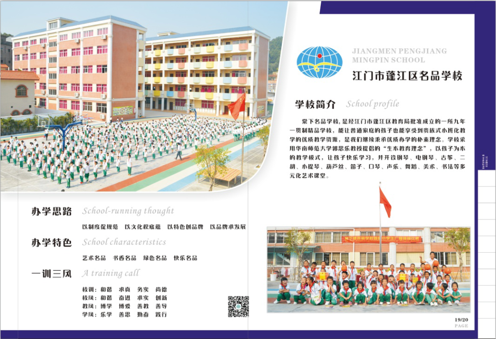 名品学校开办于2014年9月,是经江门市蓬江区教育局批准成立的一所九年一贯制民办学校。一直以来,在蓬江区教育局、镇中心学校各位领导的指导和帮助下,学校各项工作蒸蒸日上。