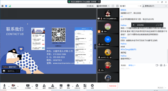 招聘会第二分会场由实践部副主任周雪清老师主持,受邀企业为中山市华英教育培训中心。华英教育人事部覃老师热情地向各位同学介绍了华英教育培训中心的规模和招聘岗位,各位有志于在教育和培训行业发展的同学纷纷向覃老师咨询了教育行业目前的发展情况。宣讲结束后,共有13位同学马上与覃老师建立了微信联系,投递了简历,并在线上完成了相关职位的面试。