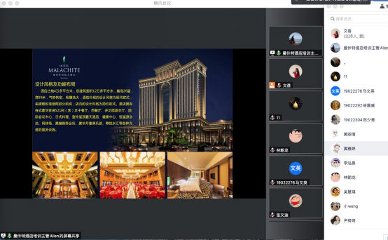 招聘会第一分会场由经理助理李文蓓老师主持,受邀企业为曼佧特国际大酒店。首先,该企业人事培训主管纪华伦先生做了宣讲,向同学们详细介绍了曼佧特国际大酒店的基本情况、规模以及酒店招聘岗位的信息和需求。宣讲结束后,同学们积极报名线上面试,与纪主管连线互动,主动介绍了自己的就业动机和兴趣,针对心仪的岗位做了应聘面试。
