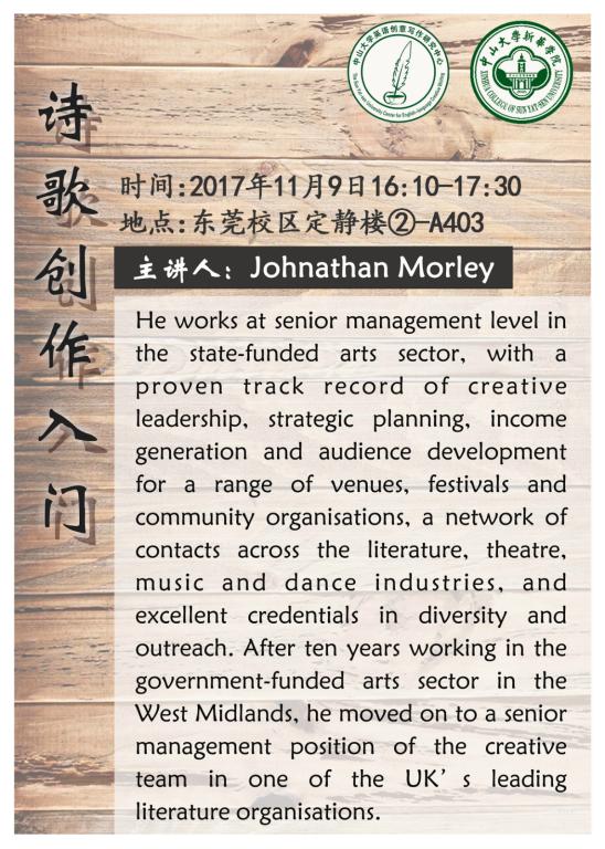 主 讲 人: Johnathan Morley (Norwich Writers’ Center)