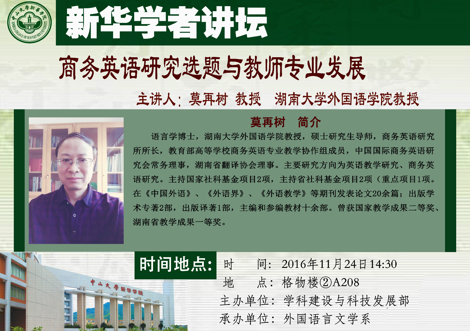 讲座时间:2016年11月24日下午14:30