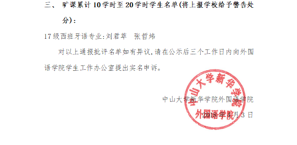 关于通报批评张哲炜等8名同学违反考勤条例的通知