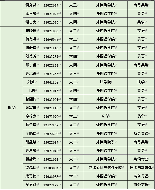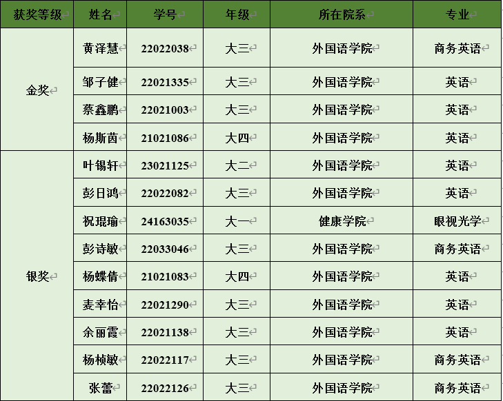 通过本次比赛,莘莘学子赛出了公司的风采,激发了潜能,提升了英语读写译综合实战能力。经过本次大赛组委会系统统一评分,本次校内初赛获奖名单也出炉啦!
