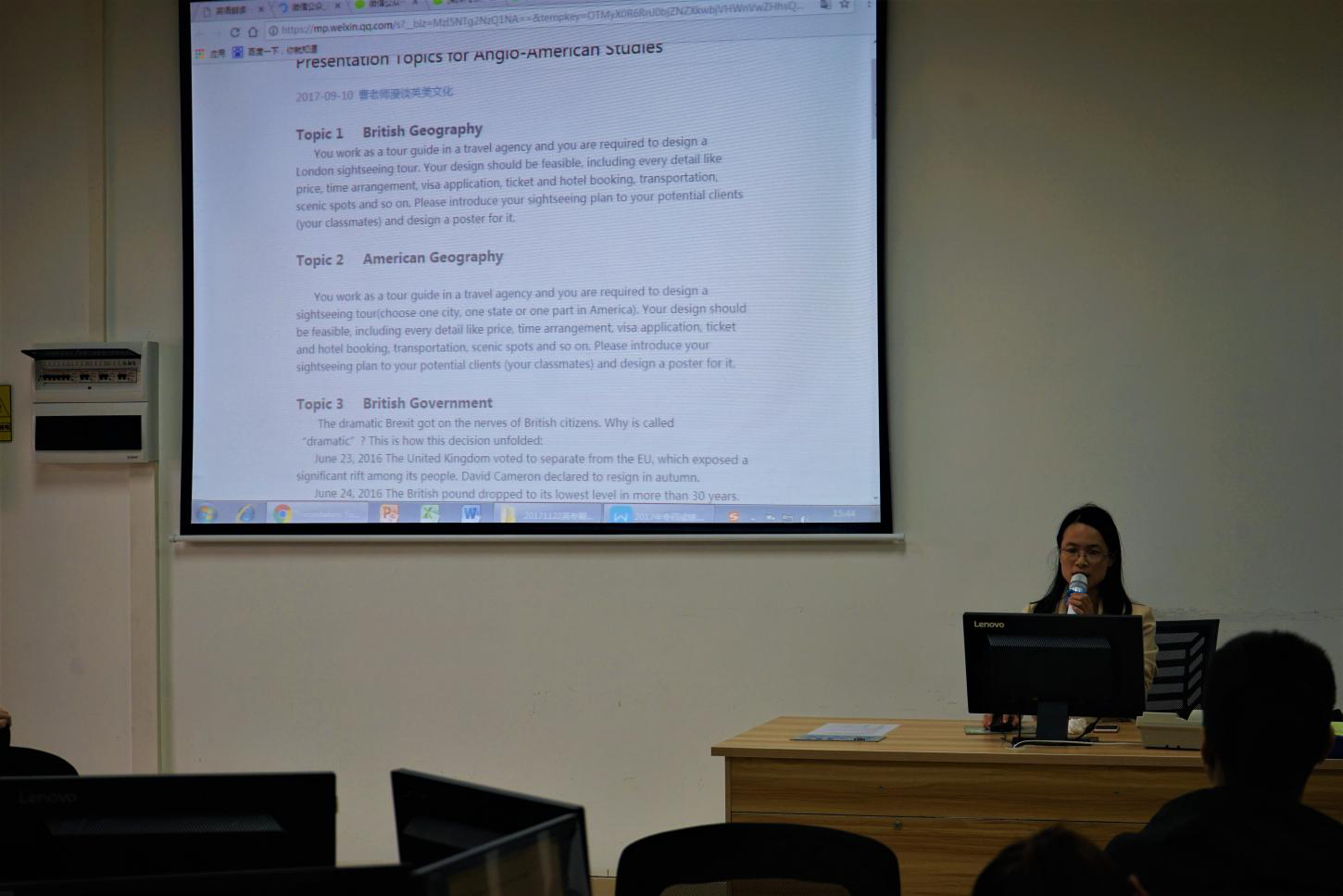 接着,各备课组长就课程教学中遇到的问题及解决思路作介绍。大二综英组长刘霞老师认为,员工可以分成不同的小组完成课堂上老师所布置的任务,大家分工合作会更有课堂参与感。老师则会针对重点难点进行解释,并对课堂任务完成度高的员工予以加分鼓励。对此,廖经理给出了几点建议:一是备课小组在课程的安排的进度和给员工的任务应该尽量的统一,备课小组要先进行讨论,最后决定采用最佳的方式;二是老师们要多进行旁听,年轻教师要虚心学习资历较老的教师的一些经验;英语专业老师要多与商务英语老师交流。三是商务英语的部分教材在下个学期开始要更换成英语专业的教材,还要开一些泛读课。老师们在综英课和写作课上一定要布置一些写作任务给员工, 在大一的商务报刊选课上要多安排一些英语文学的作品,老师不应要求员工过于专注在画mind map上。员工的PPT应该简洁,员工应该多注重自己的阅读能力和写作能力的提高。
