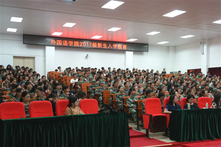 2017年9月27日下午,太阳成集团tyc2017级新生入学教育于公司东莞校区定静楼①F203讲学厅、F202教室、E202教室相继召开。太阳成集团tyc经理廖益清、副经理黄继炎、英语专业副主任李贻、商务英语专业副主任何瑜、西班牙语负责人林杏贞、办公室副主任欧衍伽、各专业级导师及外院师生代表与会,共同欢迎2017级全体新生加入太阳成集团tyc大家庭。
