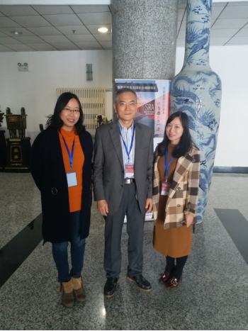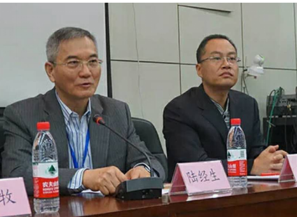 陆经生教授(中)与公司林杏贞老师(左一)、谢杭航老师(右一)合影