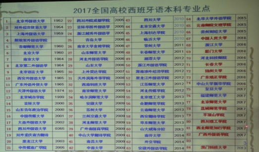 陆经生教授援引习近平主席在去年9月主持中共中央政治局学习时的讲话,表示:“中国参与全球治理需要一大批熟悉党和国家方针政策、了解中国国情、具有全球视野、熟练运用外语、通晓国际规则、精通国际谈判的专业人才。”同时陆教授还指出,在“一带一路”视域下,中拉关系实现跨越式发展,由于人才需求大,就业形势好, 2017年全国开设西班牙语专业的高校达到82所,仅2017年全国西语专业(含在校)本科生14000余名、硕士生270余名、博士生7名。高校西语专业迎来了发展的新机遇和挑战,因此各高校应从以下三个方面对西班牙语专业改革发展进行策略思考:一是重视语法教学,科学课程设置,降低生师比例为青年教师科研发展提供保障;二是以双外语(多外语)教学制为基础,培养外语通才;三是创新复合型人才培养模式,培养“多语种+”高端人才。