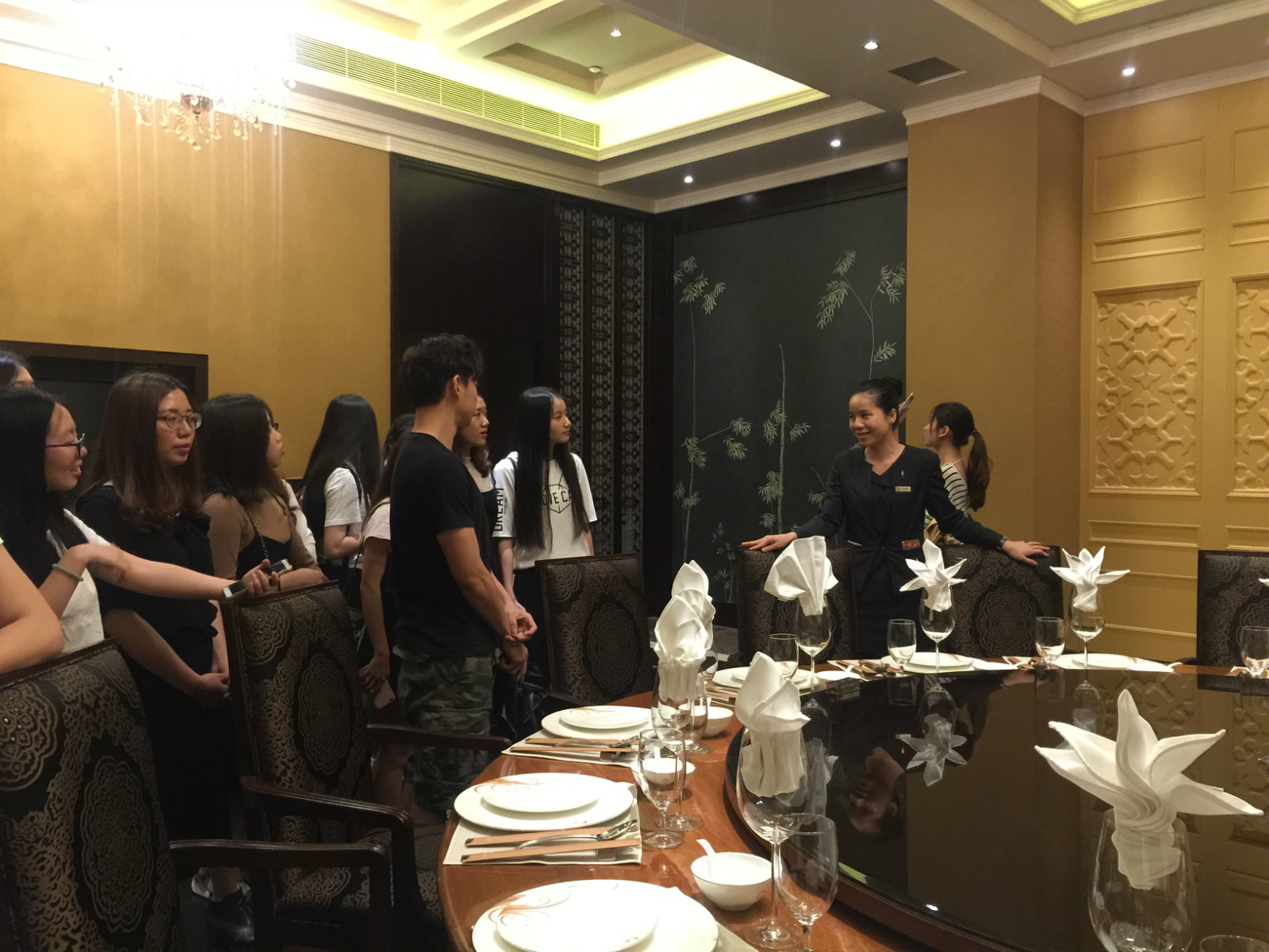 尹总监、周经理一行还热情带领公司师生参观了酒店的豪华套房、风格迥异的中、西餐厅及大堂吧,还参观了可同时容纳2000人的大型豪华宴会厅及KTV等娱乐设施。在参观的过程中,同学们纷纷被酒店高贵典雅的装修、先进的配套设施及细致入微的高品质服务所折服。不少同学露出赞叹之情,并表示非常愿意在酒店行业里贡献自己的才华与力量。