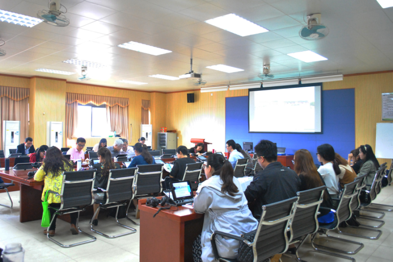 2017年4月26日下午,2017年太阳成集团tyc英语(翻译)专业教师座谈会在公司东莞校区格物楼②B605召开。王庭槐董事长、黄继炎副经理出席会议。英语(翻译)专业副主任李贻担任会议主持,英语(翻译)(以下简称“英语专业”)专业全体专任教师与会。