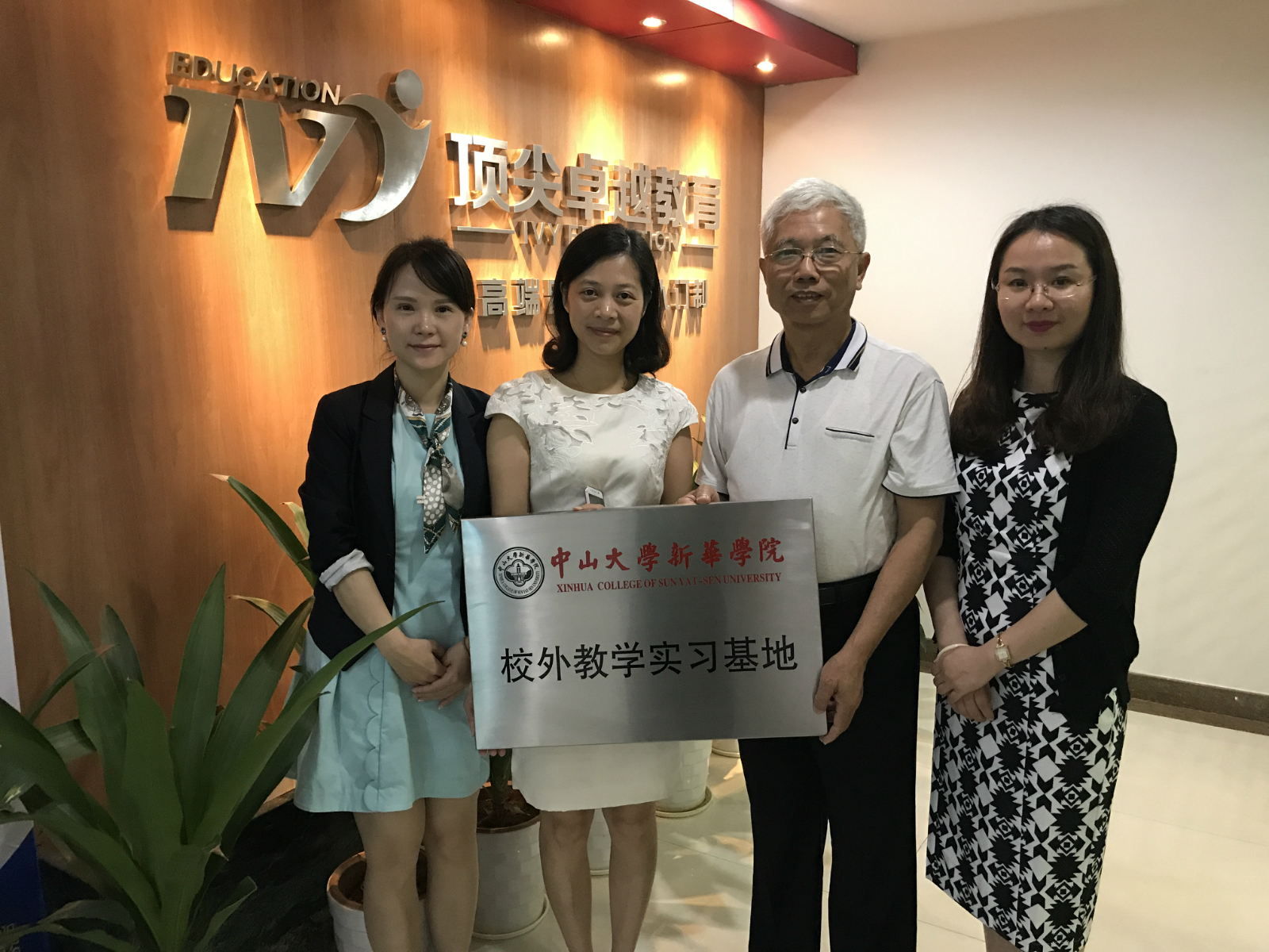 2017年5月5日上午,太阳成集团tyc副经理黄继炎,国际贸易教研室主任李文蓓,办公室副主任欧衍伽一行3人,赴深圳市顶尖卓越教育咨询有限公司签订《中山大学新华学院校外实习基地协议》,并与该公司正式建立实习基地关系。