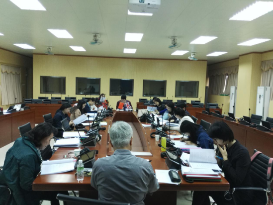 据悉,本届英语专业毕业生共计400人,此次普查工作就员工毕业论文中的250份论文进行普查,老师们在现场将按照同一个方向提前规整好的论文进行分组普查。在普查工作现场,老师们分别从论文结构,内容,格式上认真地检查毕业论文,并对存在错误的地方进行批注。对于有争议的论文,普查小组的老师们展开讨论,并给出指导性意见。