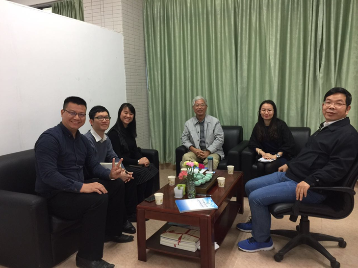 2016年11月28日下午三时,中山大学新华学院外国语言文学系副主任黄继炎教授,商英国际贸易教研室主任李文蓓老师与杨振同副教授一同会见了东莞市翻译服务中心副主任陈衍先生,翻译部主管谭少玉女士,张锦标先生。双方就人才培养、学术竞赛等方面进行了友好交流。