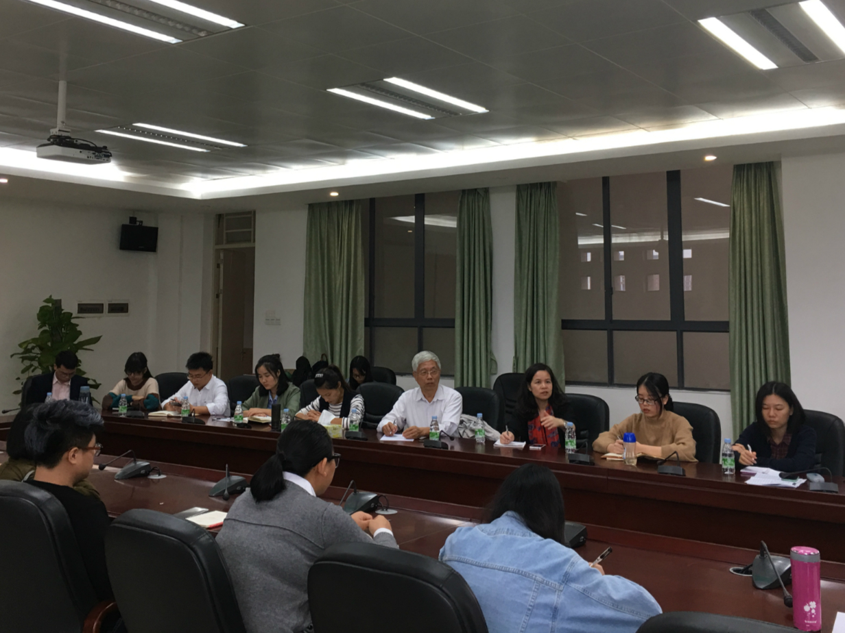 2016年11月9日下午, 2016-2017学年第一学期期中教学检查师生座谈会在公司东莞校区格物楼②B301顺利召开。外语系主任廖益清,外语系副主任黄继炎,商务英语专业副主任何瑜,西班牙语专业负责人吴梦醒,系办公室副主任林少淇,外语系专职教师代表、各级辅导员及教务秘书与会。