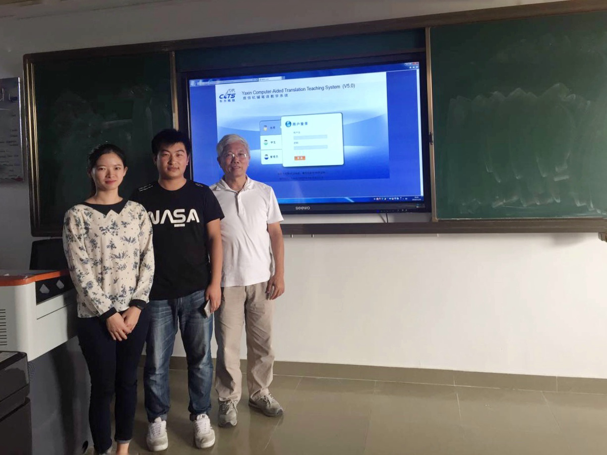 2016年11月16日下午,公司外国语言文学系副主任黄继炎、专攻机辅翻译方向的外语系教师黄越悦一行二人前往广东女子职业技术学院语言实验室,调查机辅笔译教学系统在教研中的实际应用。