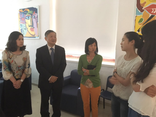 为确保两校合作顺利进行,公司代表团还在国际西班牙语中心主任Giovanni Caprara和马拉加大学Teatinos校区宿舍负责人Alberto Benito Garcia的陪同下参观了国际西班牙语中心的基础设施,包括教室、操场、多媒体教室、教师休息室和员工宿舍等,对国际员工学习、生活的环境进行实地考察,并与在该中心学习西班牙语的中国职工亲切交谈,询问他们在马拉加的学习生活情况、学习效果和费用支出等,以便为公司赴马拉加大学学习交流的同学提供更多后续的帮助,促成合作项目顺利进行。