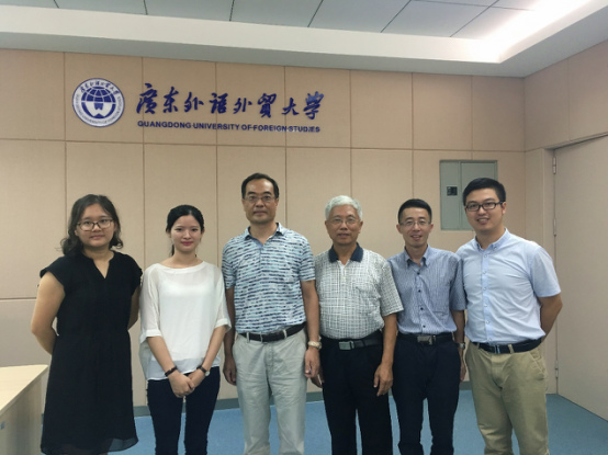 2016年9月7日下午,公司外国语言文学系副主任黄继炎、英语专业副主任李贻及专攻机辅翻译方向的外语系教师黄越悦、蔡佳琳一行四人前往广东外语外贸大学的的计算机辅助翻译实验室调研学习,受到广外高级翻译学院经理赵军峰教授、翻译及本地化教师邹兵博士及Trados业务代表吴蓓的热情接待。