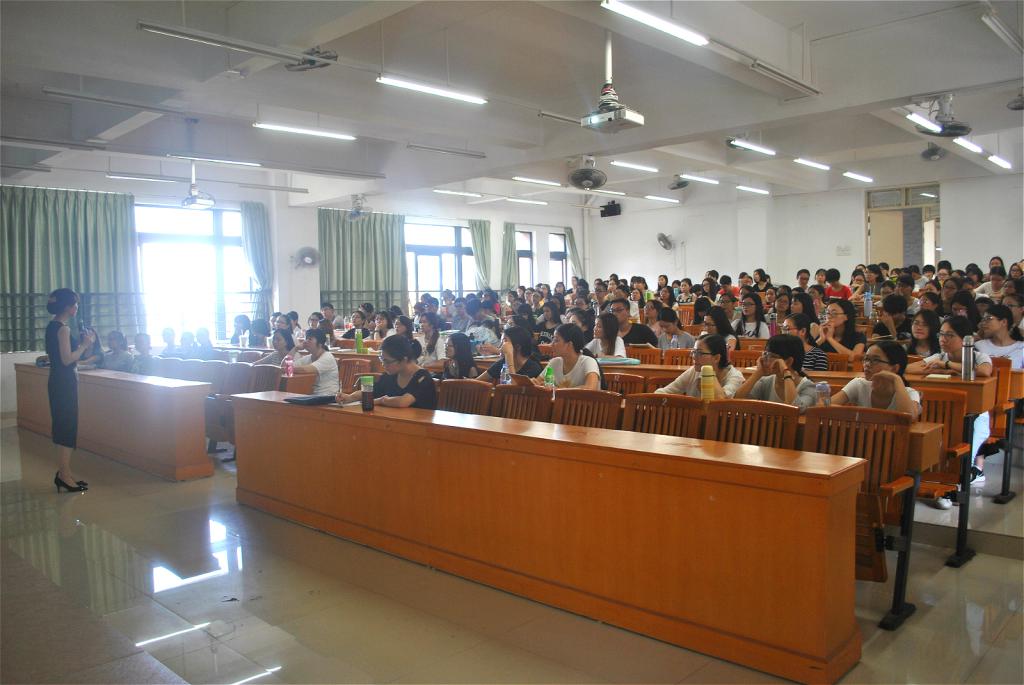 2016年6月21日下午,由中山大学新华学院外国语言文学系(以下简称“外语系”)主办的“口译大咖”讲座在公司东莞校区定静楼②A401精彩开讲。来自广东交通职业技术学院的杨璇副教授作为本场讲座的主讲嘉宾,向现场师生分享了口译经验及口译练习建议。讲座由外语系高平老师担任主持。