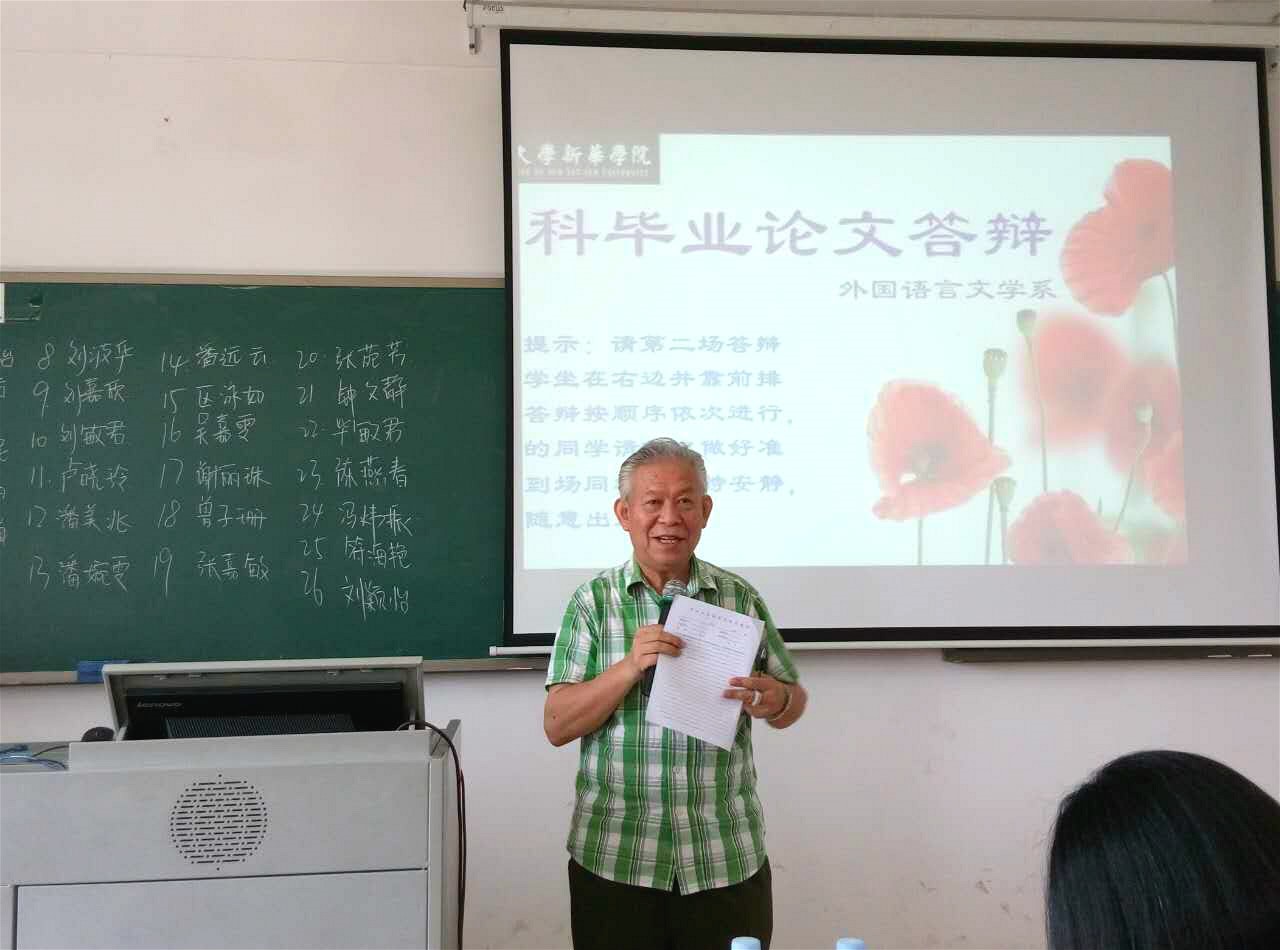 2016年5月11日下午,外国语言文学系2016届英语专业本科生毕业论文答辩工作于公司东莞校区顺利展开。参加此次毕业论文答辩的答辩委员会委员有:外语系主任廖益清教授、副主任黄继炎教授,王永泰教授、杨振同教授、李贻老师、赵琳老师、李明娇老师及来自2012级英语专业的部分员工。