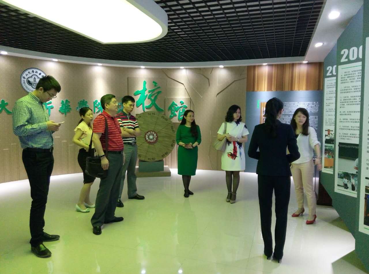 廖主任首先带领朱钦助理总经理一行参观了校史室,了解中山大学新华学院的建校历史以及建校十年以来取得的成就。随后,考察队伍一行参观了周有光纪念馆,了解语言大师周有光先生对语言学与教育的贡献及大师与公司的渊源。廖主任还带领考察队伍参观了外语系同声传译实验室,介绍了同传室的先进技术设备及学院对外语系人才培养的支持。最后,考察队伍一行参观了中山大学新华学院创客实验室,近距离接触先进科技与创意,体验3D打印的奥秘。