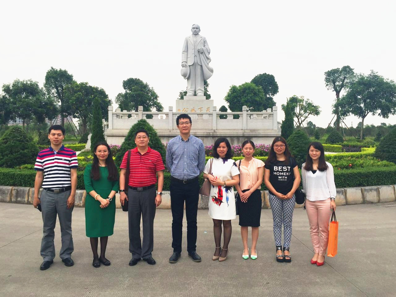 参观结束后,外语系与深赤湾码头公司一行就建立实习基地事宜展开了一场富有成果的座谈会。座谈会上,廖主任介绍了外语系商务英语专业的课程设置及对应用型人才培养的教学宗旨;指出国家“十三五”规划教育政策鼓励校企协同创新、校企互动,以加强市场需求与人才培养的对接。随后,教研室主任李文蓓老师向朱总一行介绍了外语系自成立以来建立的实习基地以及与实习基地互动的情况;强调当下的校企互动形式不再是以往的“单向输出”,而是校企“双赢”,各取所需,互惠互利。随后,朱总及深赤湾码头公司其他代表发表了意见,认同校企互动的必要。座谈会上,双方对建立实习基地的条款做了深入探讨,互相交换意见,就外语系与深赤湾码头公司的合作达成初步共识。座谈会结束后,廖主任带领朱总一行参观了校园,并在中山像前合影留念。