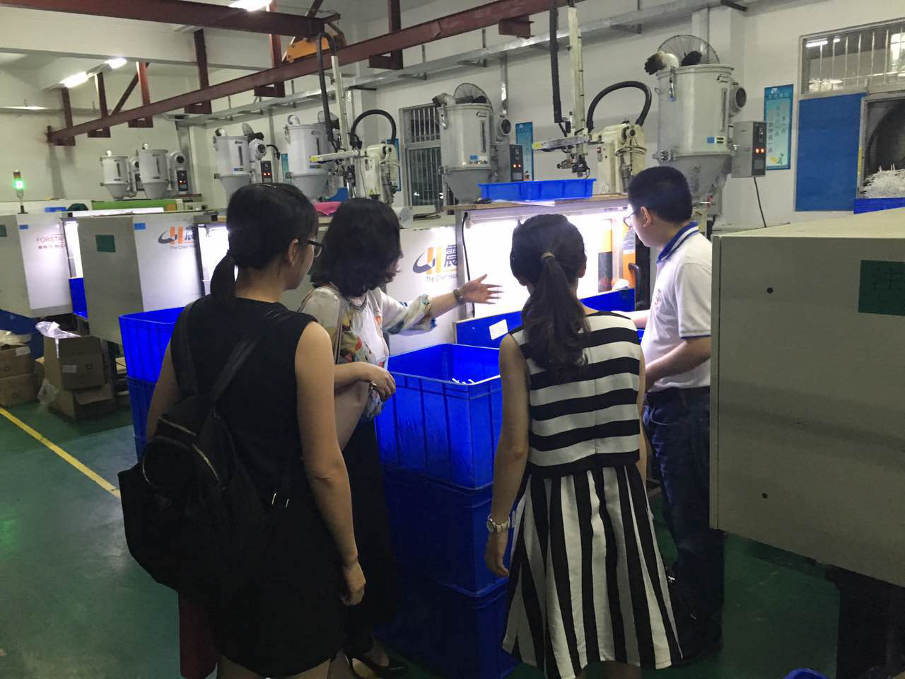 杨雄总经理向廖主任一行详细介绍了车间生产及设备的运作流程和情况,展示了样品及零配件。杨总在介绍厂房运作的同时,也为廖主任和老师们介绍了关于企业选址、企业文化、生产运作、市场走势等企业管理的情况。廖主任一行深感到创业者的艰辛及公司运营的不易,对杨总创业的坚持及运营的创新理念赞不绝口。