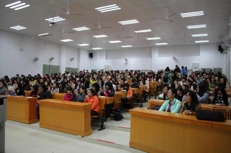 此次讲座主要分为“听力”,“语言知识”和“阅读写作”三个部分,分别由三位老师细心讲解。首先,方艳老师告诉了大家2016年专四专八考试的具体时间:TEM4 2016年4月16,TEM8 2016年3月19日,提醒同学们尽早进入备考的状态,毕竟现距离考试的日子也不遥远了。然后,方老师直奔主题,具体指出了专四专八考试中听力部分的题型主要变化:专四听写从以前的15个意群,150单词变成现在的10个意群和80-90单词。这主要是考察员工的听力理解,拼写熟练程度,正确运用标点的能力,并建议同学们多听真题和专项听写习题。 方艳老师幽默风趣的言语,赢得了全场观众的阵阵掌声。