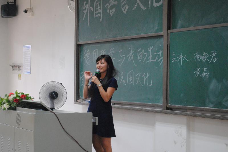 洪茹老师在“与德语结缘”中,向同学们介绍了她在德国基尔留学时的生活环境,向大家展示了她在德国的兼职经历,让同学们更深入地了解了洪茹老师是在怎样的环境下在异国他乡度过了留学的日子。而在“基尔大学与我”“教育学与我”部分中,向大家介绍了德国的学习模式和德国的老师,并强调了在德国里图书馆对员工而言是十分重要的学习工具。最后,洪茹老师寄予我们以深切期望,希望我们在文化多元中理解多元文化价值,从而得到文化认同感。