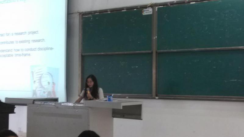 紧接着曾蕾教授针对公司的员工,讲授了英语学术论文写作的方法与技巧。提出论文写作前先大量阅读、收集与选题相关的材料,了解选题的研究现状,再确定最终选题。讲座中曾教授向同学们详细介绍了开题报告,摘要、正文、参考文献等的特点与规范。
