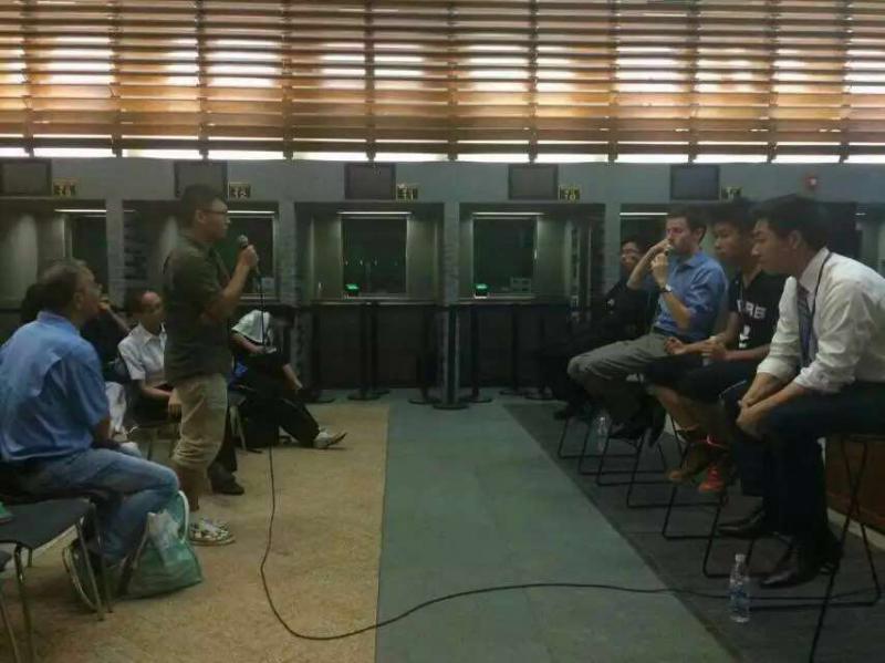 图为主持人和三位演讲嘉宾,颜锐同学演讲中
