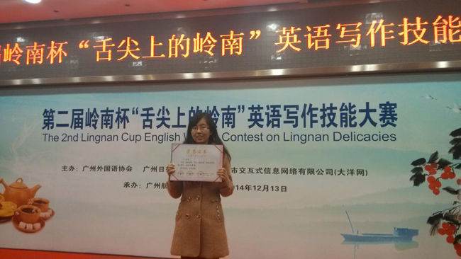 公司应邀参加由广州外国语协会与广州日报报业集团、广州大洋网联合举办的第二届岭南杯英语写作技能大赛。本次大赛紧扣“舌尖上的岭南”这一主题,以征文方式进行,由百思英语协会承办本院初赛,评选出本院校最优秀的作品参加复赛。