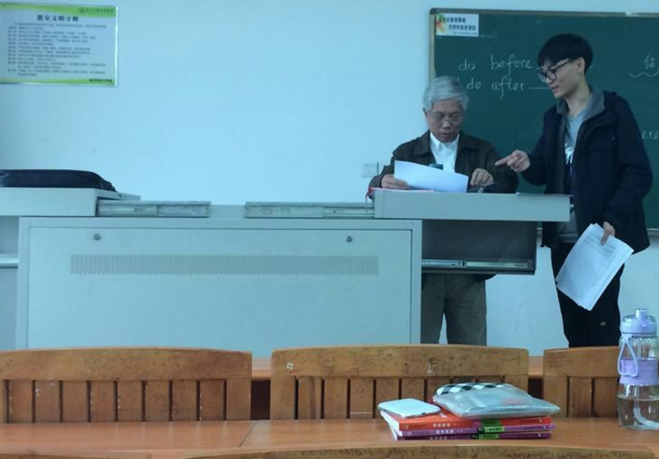 外语系办公室主任黄继炎副教授冒着严寒亲自巡视同学们的上课情况,特别是对大学英语的课堂进行了重点巡视,并在课后为老师们提出意见和建议,对同学们寄予了重大的期望。