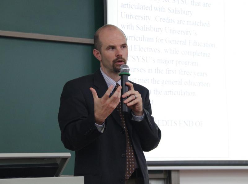 11月11日下午,由公司外事工作与合作办学部主办、外国语言文学系承办、百思英语协会协办的美国索尔兹伯里大学留学宣讲会在公司东莞校区教学楼②A201举行。