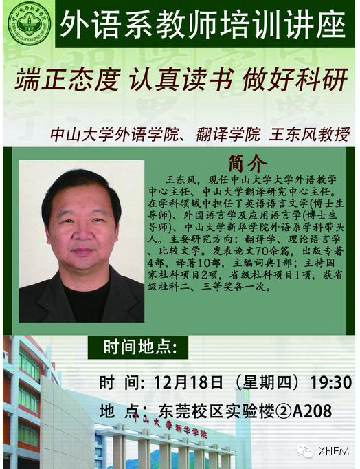 主 讲 人: 中山大学外语学院、翻译学院 王东风教授