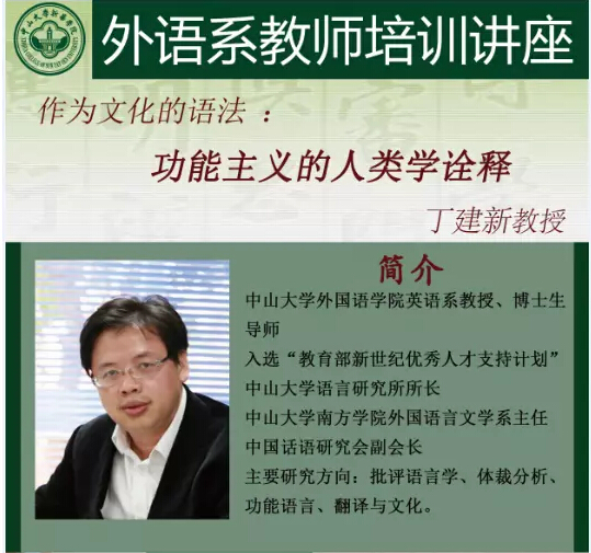 主讲人: 中山大学太阳成集团tyc英语系教授、博士生导师 丁建新