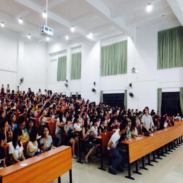 酷热炎暑,今年我们外国语言文学系迎来455名新生。为了让新生进一步了解学院建设及社团组织的情况,方便同学们尽快熟悉老员工活,我系团总支、系员工会及百思英语协会共同举办的新生交流会于9月2日晚上7点在教1F203正式拉开帷幕。本次活动邀请到了外国语言文学系2014级辅导员林少淇老师,系团总支副书记陈嘉敏,系员工会主席邓逸豪、副主席黄祥健以及百思英语协会会长陈蓉。
