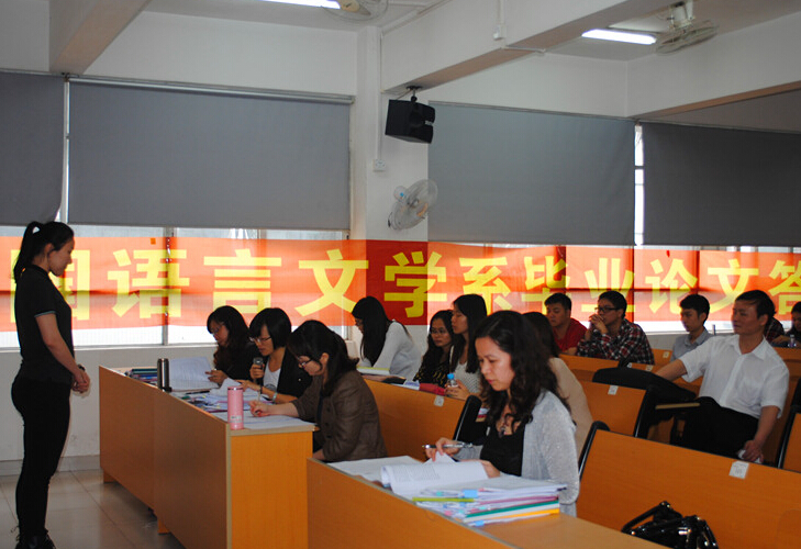 按照学院教学科研工作部统一要求,我系在4月23日和5月10日,安排了三场毕业论文答辩。出席的评委专家和工作人员有:廖益清副教授、黄继炎副教授、督导董丽明副教授、古国耀教授、何瑜老师、陈绮雯老师、黄珍老师、刘霞老师、李明娇老师、欧衍伽老师。按照学院要求,答辩员工都出席参加答辩,未参加答辩的出席旁听。