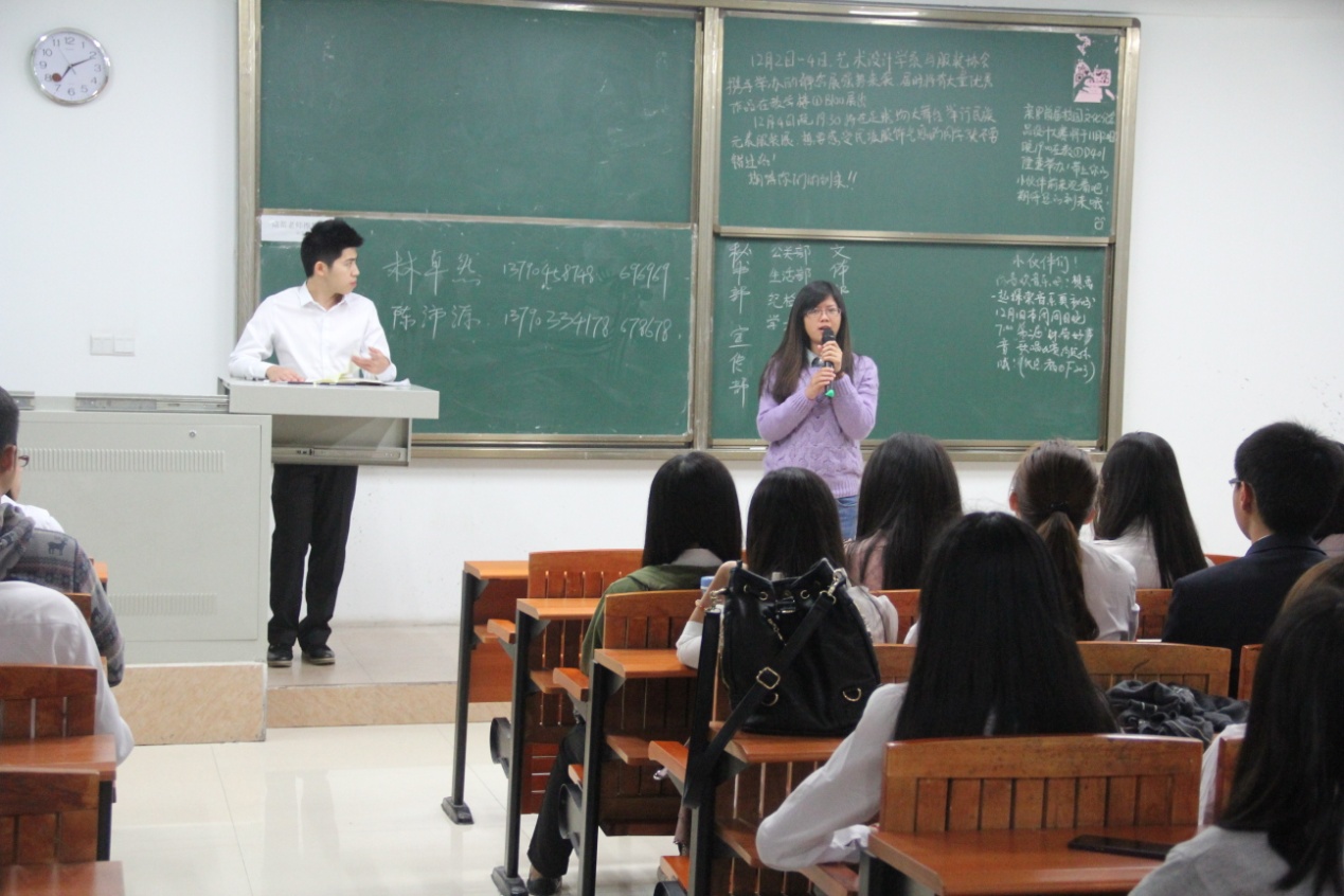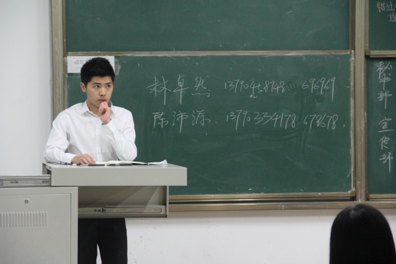 接着林卓然主席对员工会本学期末与下学期的工作进行了具体详细的安排。陈沛源副主席特别地强调了员工会内部的纪律问题:外语系员工会是外语系的门面,因此员工会成员的言行举止必然会影响到其他人对员工会甚至对整个外语系的看法。在大会的最后,各个部门召开了部门会议,明确各部门的职责和任务。新老成员之间进行了深入的交流与沟通,对新干事工作上的问题进行了解答。