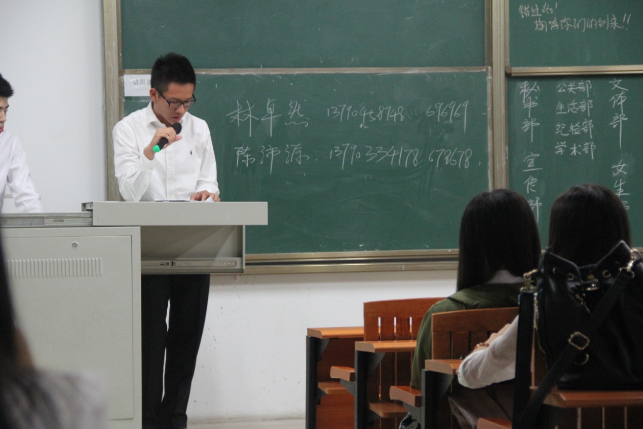 外语系员工会林卓然主席和陈沛源副主席、各个部门部长以及员工会新老干事共同出席本次大会。本次员工会全体大会旨在让我系员工会成员了解员工会目前所存在的不足之处,清楚本系员工会的工作和各部门的职责,并对接下来员工会将要举办的活动有一个总体的了解。