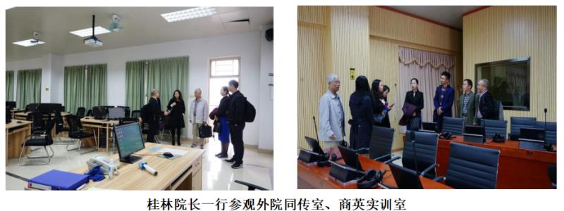 为使代表团对公司的教学模式有更加深入的了解,交流会结束后,桂林经理一行在公司领导及教师代表陪同下参观了外院同声传译实验室及商务英语实训室。桂林经理盛赞公司学术氛围浓厚,教学理念先进,希望在今后的学习交流中,能够不断增进彼此友谊,实现双方共赢。
