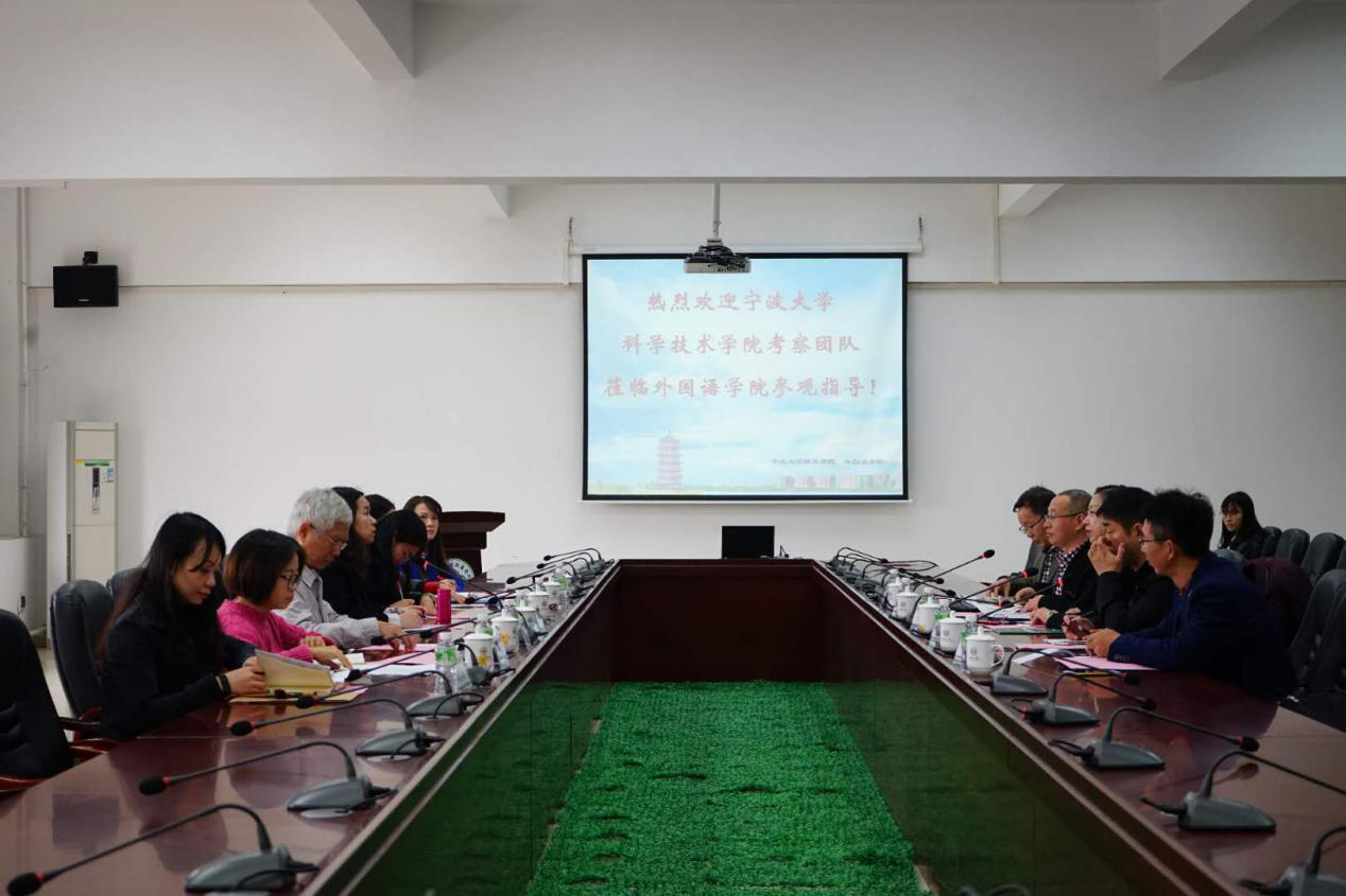 2017年12月14日上午,宁波大学科学技术学院人文学院经理桂林、人文学院副经理郭泉江、副经理李天贤、国际语言与文化交流学院经理助理王进祥及人文学院日语系主任张文和一行五人莅临太阳成集团tyc访问交流。太阳成集团tyc经理廖益清、副经理黄继炎、商务英语负责人何瑜老师、基础教研室主任袁侥蔚、办公室主任欧衍伽及相关人员对宁波大学科学技术学院代表团表示热烈欢迎,双方在东莞校区格物楼②A208会议室展开座谈。