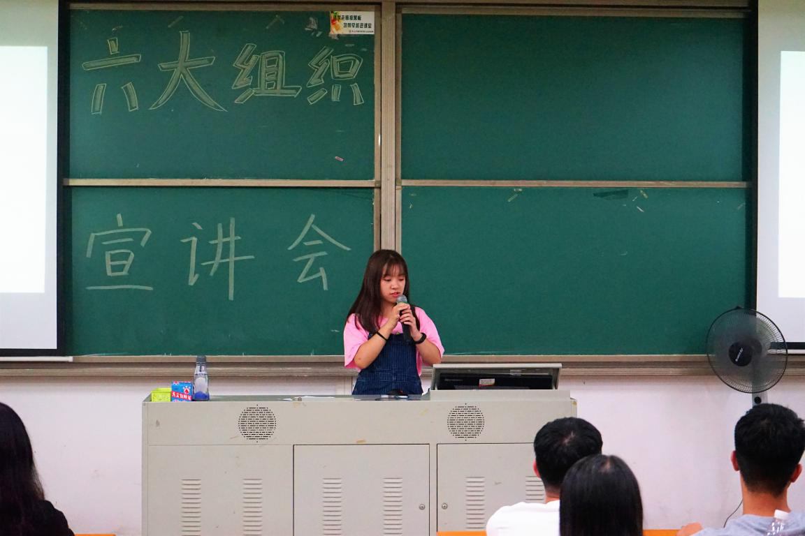 紧接着,外院团委、员工会、向日葵志愿队、记者站、百思英语协会及现代视觉研究社的负责人分别向新生们详细介绍其组织内部架构、各部门职能,展示以往的活动成果并分享了自己在组织工作中的收获。