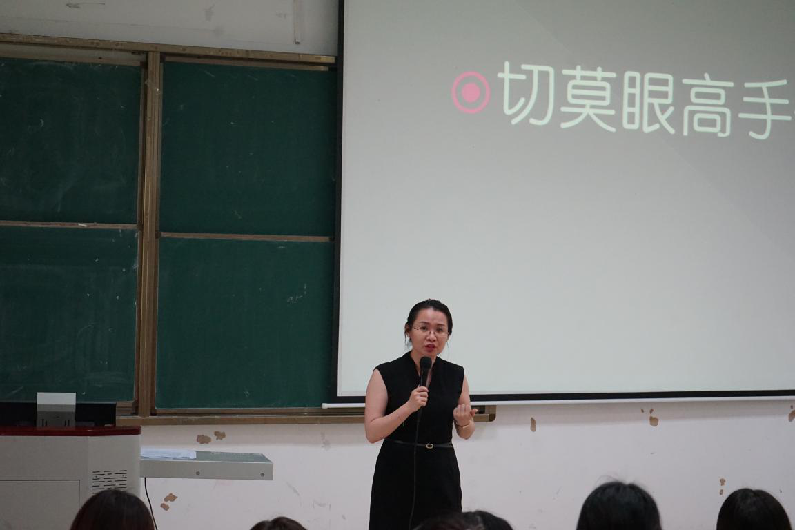 接下来,实践部主任李文蓓以诙谐幽默的语言缓解了实习动员大会的严肃气氛。李主任谈到了实习中要注意的几点事项。首先,同学们要端正心态,明确自己的位置,做到吃苦耐劳,切忌眼高手低;其次,同学们要处理好与上级和同事的关系,有契约精神,多问,多观察;最后,李主任希望同学们要乐于进取并提醒同学们多关注学院官网及公众号推荐的实习单位信息。