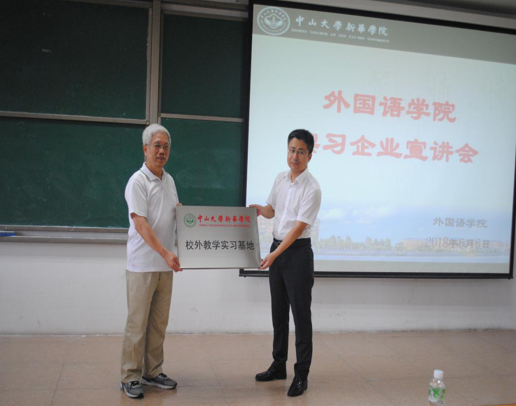 宣讲会伊始,实践部主任李文蓓作为本次宣讲会主持人给外院学子及嘉宾介绍了宣讲会的具体流程:首先是黄经理为广东华英教育集团及学易优教育集团进行授牌仪式,标志着这两家企业成为中山大学新华学院校外实习基地;接着各企业代表进行企业介绍;最后与各企业代表与2015级学子的面试及沟通交流环节。
