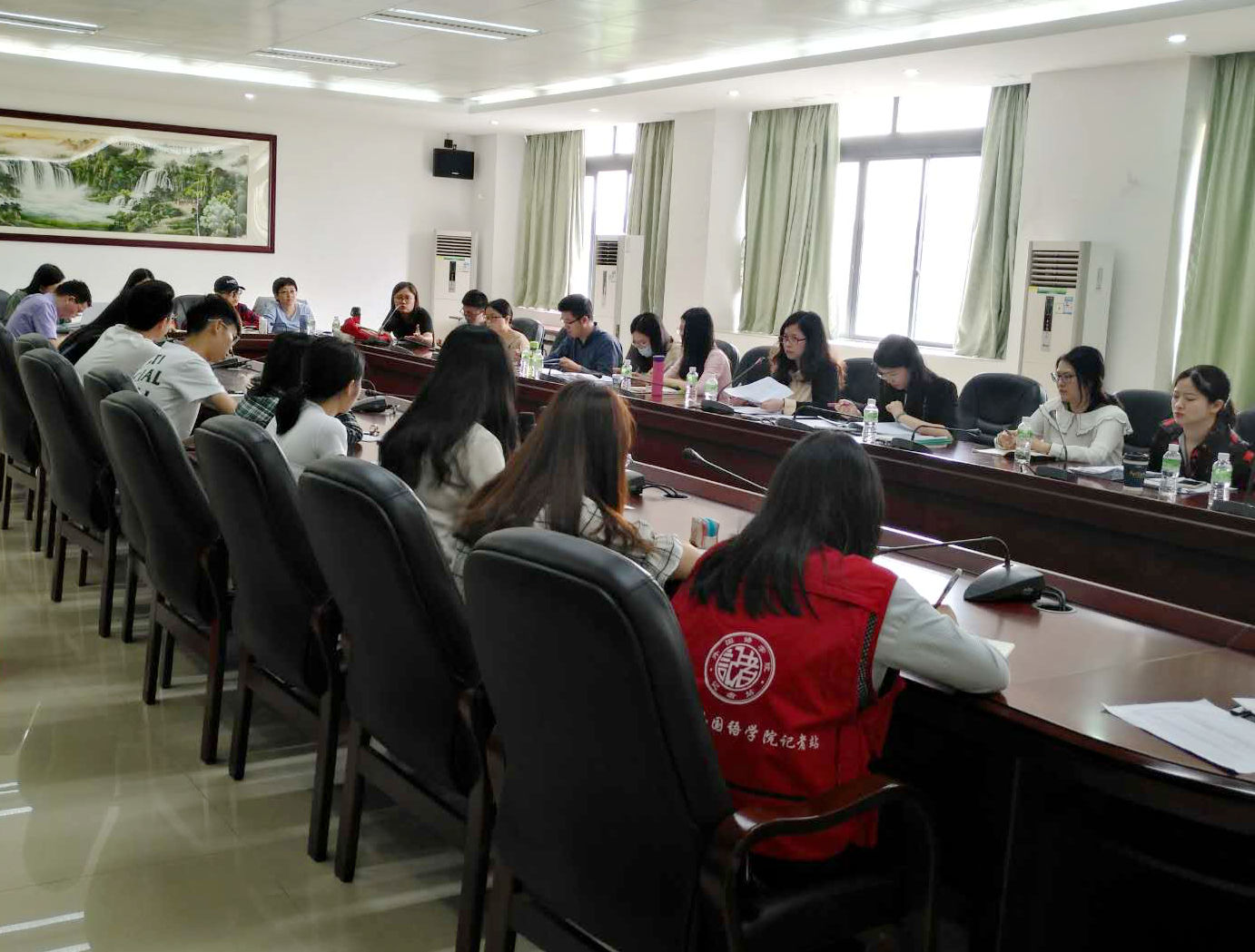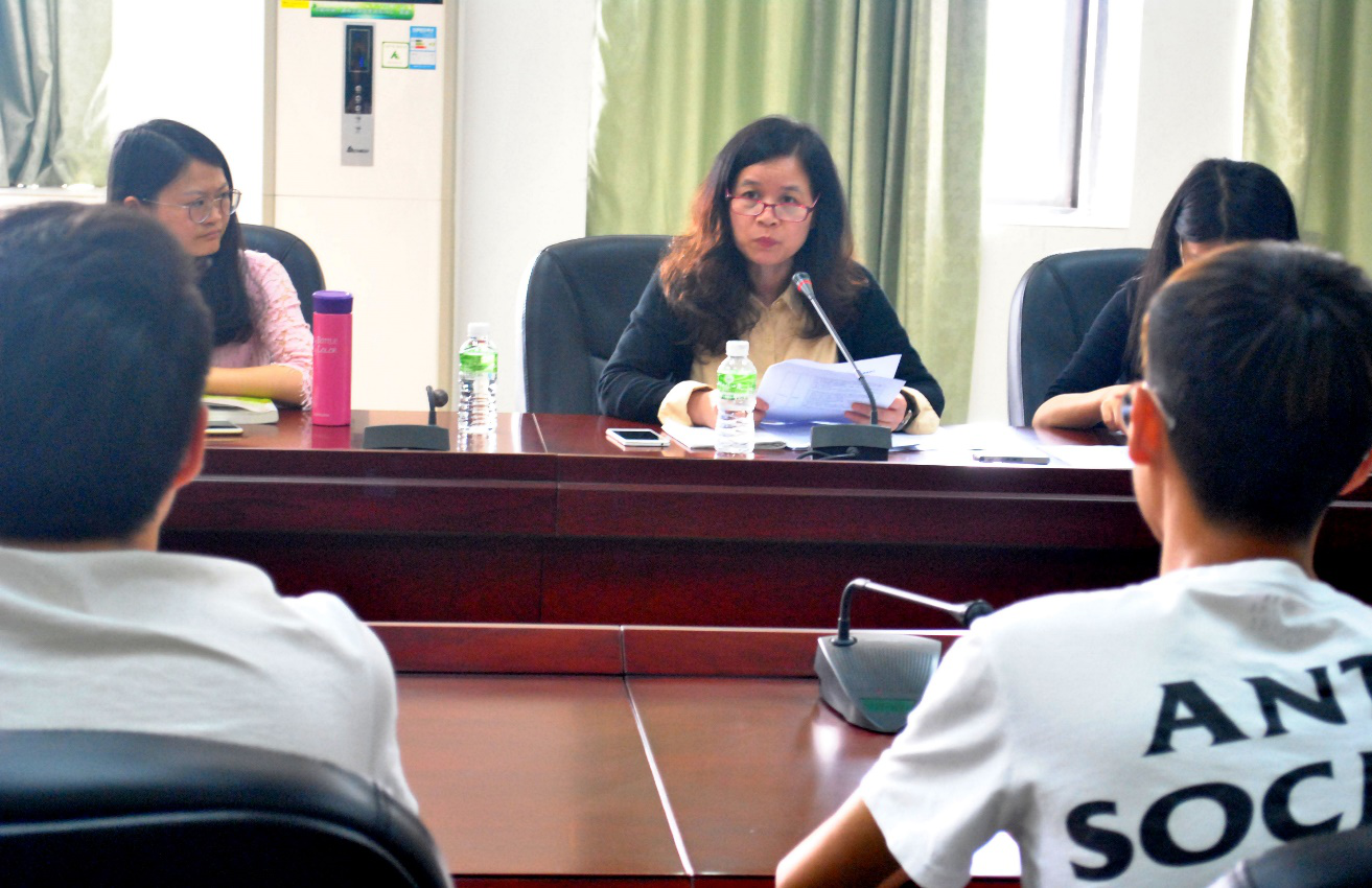 英语专业员工代表紧随其后发言。大部分员工代表认为相关专业教师学识渊博,专业过硬,同学们可以学有所成,但也有部分员工代表认为任课教师教学进度有点快,跟不上,部分教师讲课有点枯燥无聊。对此,英语专业副主任李贻老师回应道,不同员工的学习基础和能力参差不齐,有时很难满足所有同学的接受程度,只能选择大部分员工可以接受的程度进行教学。此外,有些课程本身偏重理论性,知识性的讲授不可避免,但一些细节性的问题如讲课的先后顺序可做些调整。廖院对李贻老师的发言表示赞同,她再次强调,同学们要摆脱以往高中过分依赖教师的学习想法,充分利用课余时间来学习提高自己。