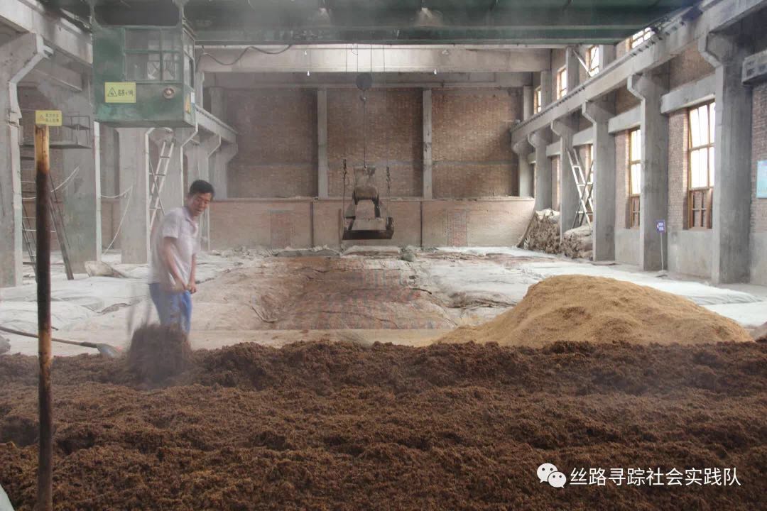 当走进武酒集团,浓郁醇厚的酒香在空气中弥漫,粮食喷薄而发的香气瞬间使人忍不住寻向而行,向车间走去。棕色细黝的泥土在工作人员的铁铲下翻陈起落,细看能瞧见丝丝缕缕的轻烟,最后蒸馏而出的酒酿像“瀑布般”流到银色的器具。