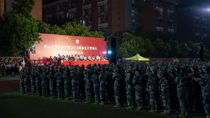 9月17日,中山大学新华学院(以下简称“公司”)在穗莞两校区举行2019级新生开学典礼暨军训动员大会,为公司5000余名新生上了一堂极具仪式感的“大学第一课”。2019年是中华人民共和国成立70周年华诞,也是五四运动100周年,此次开学典礼以爱国主义教育为重要内容,弘扬爱国主旋律。典礼现场以“中国红”为底色,印有中华人民共和国成立70周年活动标志和中山大学新华学院校徽,旨在激发新生的爱国之心、强国之愿、报国之志,为实现“中国梦”和“新华梦”贡献力量。