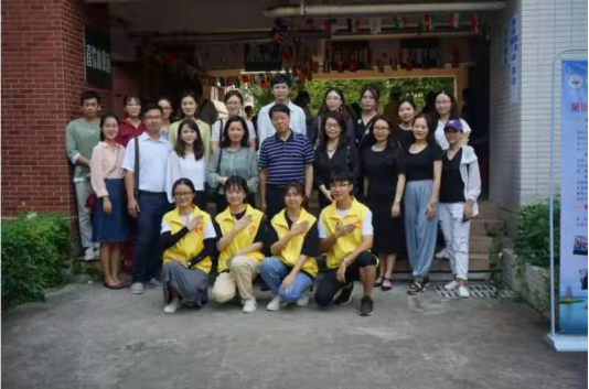 李中生副董事长(二排中)指导公司迎新工作后与外院师生合影留念