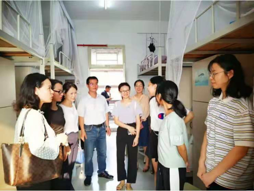 公司领导、各专业负责人、级导师、辅导员们到宿舍看望新生